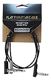 - The RockBoard Flat Y-Splitter cable is extra flat and space-saving. Designed to optimize pedalboard real estate, it features a slim rectangular body and very thin angled plugs. It keeps the setup tidy and neat looking and guarantees a short, clean signal path and pristine signal quality. Using the RockBoard Flat Y-Splitter Cable ensures a perfect match to a TRS effects loop on an amp or pedal or constructive stereo operations. - flat Y-splitter cable - splitting TRS stereo signals into TS mono signals or as insert cable for TRS effects loops - compact and super flat angled plugs - flexible copper conductor 20 x 0.12 mm - twisted copper shielding 34 x 0.12 mm - PE (polyethylene) signal insulation - outer PVC insulation - capacity of less than 10 pF/decimeters - conductor resistance of less than 10 mOhm/decimeters - 1 x angled 6.3 mm TRS audio plug - 2 x angled 6.3 mm TS audio plugs (gray = tip / black = ring)