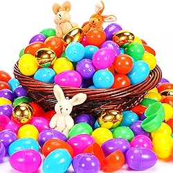 Easter eggs includes 500 pcs bright colorful solid assorted colors plastic Easter eggs (orange, yellow, green, blue, purple and pink) and 18 golden Easter eggs are the hit of every party Plastic easter eggs are made from durable plastic and are 2.36" inches with hinge. Easy to open and close Perfect for Easter egg hunt games, Easter toy and prizes, Easter basket fillers Fillable Easter eggs,filled with Easter candy, toys and give them as holiday gifts or party gifts. Enjoy the great fun of Easter egg