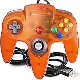 SAFFUN [USB Version] USB N64 Controller, Wired PC Gamepad [3D Analog Stick] for Windows PC iOS MAC Linux Raspberry Pi Genesis Higan Project 64 Retropie OpenEmu Emulator (Plug & Play) (Clear Orange)