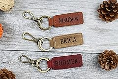 - Personalized Leather Name Keychain. Engraved with name or saying or date up to 15 characters :)