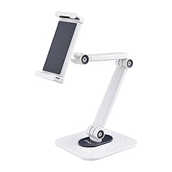 UNIVERSAL TABLET STAND: Supports up to 12.9in tablets with width of 5 to 8.9in (12.7 to 22.7cm) & up to 0.4in (1.0cm) thick; Capacity of 2.2lb (1kg); Ships fully assembled for quick deployment; For POS kiosks/retail/boardrooms/classrooms DURABLE CONSTRUCTION: This freestanding tablet holder features a heavy metal base, and robust minimal wear/tear joints with tension adjustment to firmly position your device; Precise cutouts enable convenient access to buttons/ports, camera, speakers DESK OR WALL-MOUNTABLE: Compatible with fixed wall or desk installations; Integrated silicone padding protects device surface; Includes wood mounting screws; Combine KSLTAD and LTLOCK3DCOIL (sold separately) for anti-theft protection to the tablet stand COMPATIBILITY: Supports devices such as 10.2" iPad, 11 & 12.9" iPad Pro, 10.9" iPad Air, 7.9" iPad mini, Samsung Galaxy Tab, Android Tablets, and large Smartphones; Charging cable slot available under the clamp to keep device running while in use WIDE RANGE OF MOTION: Three-point pivot arm pivots +185/-5° at the base & +100/-90° at the elbow; Adjust the height up to 18.5in (47cm); Ball joint on the adjustable tablet stand enables swivel +/-52° & 360° rotation (portrait/landscape)