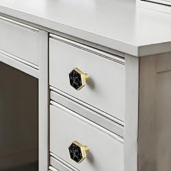 Size: Hexagon drawer pulls black length 33mm /1.30 in, height 23mm /0.91 in, base width: 10mm /0.39 in Material: Hexagon cabinet knobs are made of zinc alloy, sturdy and durable, not easy to rust or fade, suitable for long-term use Widely applicable: These black and gold cabinet knobs are suitable for cabinets, drawers, dressing tables, folding doors, wardrobes, and storage cabinets of different styles, and refurbishing some old furniture Marble design: Unlike traditional black hexagon cabinet pulls, this handle is inlaid with marble, edged with gold zinc alloy, offering a delicate texture and smooth operation Easy to install: Each hexagon knobs for cabinets comes with screws, you just need to pass the screw through the 16-19mm cabinet door and knob to tighten, allowing for quick and convenient installation