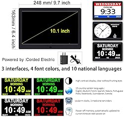 AINFTIME DST Clock with Day and Date for Elderly-3 Display Digital Calendar Alarm Day Dementia Alzheimers Clock with Extra Large Display (10.1in Black)