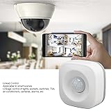 [Linked Control] The motion detector is suitable for smart scenes and supports linkage control of lights, sockets, switches, TVs, air conditioners, cameras, alarms, etc. [Large Range] Motion sensor alarm detection distance of about 5m/16.4ft, when an intruder passes through the sensing area, immediately push the alarm information to your cell phone. [Easy To Install] Compact PIR motion sensor, very space saving and unobtrusive, can be placed on the wall. Stickers are provided for easy installation and can be placed flat, wall mounted or upside down. [Wide Angle] motion sensor provides 110° wide angle projection with smart IR all round coverage and needs to be placed 8 to 9 feet off the ground for better detection. [Application Scenarios] PIR motion sensor angle adjustment, flexible installation in the living room, bedroom, bathroom, kitchen, balcony and other locations.