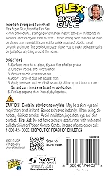- Incredibly Strong and Super Fast! New from the Flex Seal Family of Products: Flex Super Glue. Flex Super Glue, from the Flex Seal Family of Products, is a high-performance, instant adhesive that bonds in seconds. It dries crystal clear to form a super strong bond that can be used on almost any material. It’s perfect for quick repairs of plastic, metal, ceramic and more. The precision nozzle allows you to make delicate repairs on just about anything around the home. Directions: Surfaces need to be clean, dry, and free of oil or grease. Unscrew nozzle and puncture foil. Replace nozzle and remove cap. Apply 1 drop of glue per square inch. Apply pressure until set (5-45 seconds). Allow up to 1 hour to cure. Set and cure times vary based on application. Replace cap and store in cool, dry location. Made in USA with globally sourced materials. CAUTION! Contains ethyl cyanoacrylate. May be a skin, eye, and respiratory tract irritant. Bonds skin/eyes instantly. When using, do not eat, drink, or smoke. Avoid inhalation, ingestion, eye and skin contact. First Aid: Do not force skin/eye apart, rinse with water and call physician or Poison Control Center. KEEP OUT OF REACH OF CHILDREN.