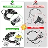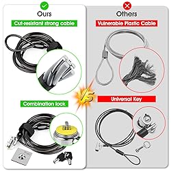 SAFETY SLOT: A security slot for most laptops, securely fastened to the inner wall of the device for a high level of safety. Please check for suitability before purchase. SELF-ADHESIVE ANCHOR PLATES: These cables are also suitable for devices without security slots, such as LCD monitors, projectors, LED TVs, etc. The anchor plates are fixed to the device with an adhesive. PROVIDES MUCH-NEEDED SECURITY: Find an immovable object in your environment and wrap the cable around the fixed object to prevent theft of electronics in public places. CARBON STEEL CABLE: The 5mm thick carbon steel cable is cut resistant and made from multiple wires twisted together for strength and reliability. WITH 2 KEYS: The unique lock engagement creates the strongest connection between the lock and the lock slot. The interface between the lock and the cable can be freely rotated.