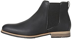 COMFORT AND FIT: These Chelsea boots have a padded insole for added comfort and elastic gussets for easy entry. MATERIAL: Amazon Essentials shoes are made from high-quality alternative leather materials. This style has a faux suede upper and is lined in faux leather. STYLE: These boots have an elongated almond toe, a clean and modern upper design, and piping around the upper. DETAILS: 1 inch heel with a flexible non-slip sole. Shaft height measures 4.75 inches from where your heel sits to the top of the shaft. DESIGN: These versatile boots take you from office to weekend, and can be paired with your favorite Amazon Essentials outfit.