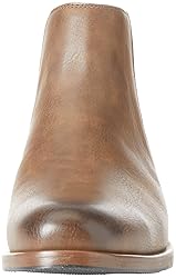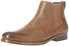 COMFORT AND FIT: These Chelsea boots have a padded insole for added comfort and elastic gussets for easy entry. MATERIAL: Amazon Essentials shoes are made from high-quality alternative leather materials. This style has a faux calfskin upper and is lined in faux leather. STYLE: These boots have an elongated almond toe, a clean and modern upper design, and piping around the upper. DETAILS: 1 inch heel with a flexible non-slip sole. Shaft height measures 4.75 inches from where your heel sits to the top of the shaft. DESIGN: These versatile boots take you from office to weekend, and can be paired with your favorite Amazon Essentials outfit.