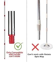 [American Threaded Joint] This mop replace handle is compatible with most Spin mop and brooms, such as O-Cedar Spin Mop with 1-Tank & 2-Tank System. It can also work with most other spin mop and brooms which with American Threaded Joint. But it can't replace mop handles with rotating functions. ❗❗❗ Note: Do not include the Mop Head Base and Mop Head Refills. [Much Longer] You can combine these 4 sections of the mop handle to achieve from 35 Inch to 59 Inch length, so that you don’t need to bend over to mop the floor. Bend over to mop is hard working. With the longest length, you can reach and clean your ceiling. [High Quality]This spin mop handle replacement is made with lightweight stainless steel, durable, sturdy and last a long time of use. With Standard American Screw, this mop stick can work with most of other brand’s spin mop & brooms. [Easy to install]: You can install this mop head handle with your mop replace head easily. Please make sure your mop or broom have a America Threaded Scew Joint. [Package included]: 1 mop handle replacement in the package. If you have any questions, please contact us from your amazon account, your problems and questions will be solved in 24 hours.