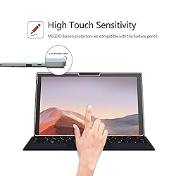 [Compatible With]: Specifically designed for Surface Pro 7 Plus/Surface Pro 7/6/5/4/3 tempered glass screen protector(12.3 inch),also compatible with the Surface Pen [Like Paper Feeling]: With the frosted feel, it feels like writing on paper, so you can work paperlessly without losing the feel of paper. [Anti Glare]: Reduces glare and reflection from the sun, reducing dizziness and eye discomfort after long-term use. [Easy to install]: Installation video and tools can help you install the screen protector more easily and bubble-free. [What You Get]: MEGOO Tempered Glass Screen Protector, alcohol wipe, microfiber cloth, positioning stickers, Lifting sticker, dust removal sticker, installation guide, our unbeaten lifetime warranty and friendly customer service.
