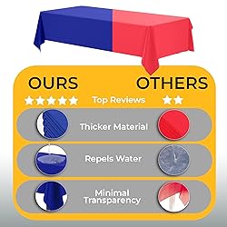 Includes: This 48-pack of purple tablecloths for rectangle tables measures 54" x 108" fitting rectangle tables up to 8 feet long. Whether you're looking for plastic table cloths bulk, picnic table covers, or purple table cloth rectangle table, these disposable table covers rectangle are sure to meet your party needs. Quality: Each purple plastic table cover is made from thick, waterproof plastic that resists tears & protects from spills. These heavy-duty plastic table covers are great as outdoor tablecloth as well as indoor disposable tablecloth, making cleanup a breeze and protecting your dining table from any party mishaps. Modern Design: Add style to any setup with these sleek purple plastic table cloth disposable, perfect for creating a modern look. This plastic rectangle tablecloth disposable blends beautifully with your party decorations. Use them as elegant purple table cloths for weddings, events, or birthday celebrations. Easy Clean Up: Say goodbye to laundry with these purple disposable tablecloths—just cover your table, celebrate and toss when done. Ideal for large events, each purple plastic table cloth helps reduce cleanup time while keeping your table spotless. Great plastic tablecloths for rectangle tables for any host in need of easy-to-use party supplies. For All Occasions: From weddings and birthdays to holidays and barbecues, these purple outdoor table covers for parties are made to fit any event. Stock up on reliable bulk plastic tablecloths rectangular for effortless style and protection. A party must-have for those needing durable table cloth bulk table covers for 8 foot tables.
