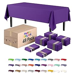 - Elevate any event with this 48-pack of purple table cloth bulk, perfectly sized at 54" x 108" to fit standard and 8 ft table cloth rectangle table setups. These purple table cloth rectangle table plastic covers provide full coverage and a sleek look for weddings, birthdays, picnics, and more. Made from high-quality, waterproof material, each purple plastic tablecloth is durable, tear-resistant, and easy to use. Whether you're dressing up a folding table, picnic table, or dining table, these disposable table cloths offer both elegance and convenience. Simply cover your table, enjoy the event, and toss when done. ideal for fast cleanup. Perfect for use as a rectangle plastic tablecloth, purple tablecloth for rectangle table, or party table cloths disposable, they protect your surfaces while elevating your decor. Great as table covers for 8 foot tables, rectangle tablecloth plastic, or table cloths rectangle, they suit any indoor or outdoor occasion. These plastic table cloth rectangle table options work beautifully for formal dinners, casual barbecues, or themed parties. Whether you call them disposable table cloth rectangle table, rectangle table cloth, plastic cover for table, or tablecloth rectangle, these wholesale tablecloths in bulk which are purple table cloths bulk delivers unbeatable value. Add style and protection to every event with these versatile, easy-to-use, and super sleek purple rectangular tablecloths—a must-have for your party supplies collection.