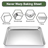 PERFECT COMBINATION: Pack of 9 bakeware Set that includes 3 different sizes - 3 rimmed baking pans, 3 cooling racks and 3 silicone baking mats, suitable for most ovens. The multi-size set can be freely combined and matched between different sizes, helping you to easily solve the baking tasks in the kitchen, Perfect for baking bacon, crispy chicken, bread, pastries, cookies, brownies, fruit cobblers making, cooling cookies and cakes and draining water and oil. HEALTHY MATERIAL: Baking sheet pans and cooling racks are made of high-quality stainless steel with good rust and deformation resistance. The non-stick baking mats are made of food grade silicone and reinforced fiberglass, can withstand temperatures ranging from -40°F to up to 500°F, scratch resistant and dishwasher safe. There is no chemical coating on the surface of the baking pan, which makes baked food safer and can effectively protect the health of you and your family. SUPERIOR CRAFT & HEAVY DUTY: Highly mirror polished of the surface of the baking pans are great to reduce the risk of food sticking and easily release food. Each stainless steel rack with tight grid has four raised feet, keeping meat lifted above juice and easily release. Baking mats perfectly fits in the baking pans and safe for oven. EASY TO CLEAN: baking pans adopt excellent surface treatment technology, the surface has good non-stick performance, and the surface is not easy to stick to water, oil, and food, which can effectively reduce the risk of food sticking, allowing you to better enjoy the fun of baking. Cleaning pans and grills are quicker, so you can save more time and spend quality time with your family. PREMIUM BAKING DESIGN: The smooth rolled edge design avoids scratching your hands, making it more convenient and firm to pick up the baking pan. The multi-size baking pan can meet the baking needs in different situations, such as making baked bacon, crispy chicken, pastries, biscuits, and other foods, making the food you make more delicious. The excellent baking performance of the baking tray helps you to enjoy a good baking time.