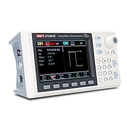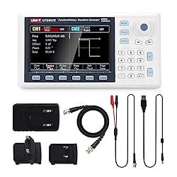 - UNI-T UTG932E/UTG962E arbitrary waveform generator frequency signal generator200MSa/s sampling rate with 14 bits vertical resolution.Frequency output of 60MHz/30MHz.1μHz full-band resolution signal generatorDDS (direct digital synthesis) methodLow jitter square wave outputTTL level signal compatible 6 digits high accuracy frequency counter24 groups non-volatile arbitrary waveform storage.6 Modulation types. AM, FM, PM, FSK, Line, Log.Frequency scanning and output supported.Powerful upper computer software.4.3” TFT color screen.Standard configuration interface: USB device.Easy-to-use multi-functional knob and numeric keypad.What you get1 x UTG962E/UTG932E function generator1 x power adapter (USA standard)1 x USB cable power cord1 x BNC cable1 x BNC cable with alligator clips1 x paper manual1 x eManual1 x softwareAccurate & Consistent for education, communication, electrical signal generation, laboratory. Applied in designing, testing, troubleshooting, and repairing of electronic and electroacoustic devices, i.e. circuit and equipment testing in cellular and wireless systems, broadcasting, television and radio systems; semiconductor component testing.Budget friendly & Intuitive for hobbyists, novices, students, small labs, basic projects, pro audio measurements. Learn and update skills, work with audio gear, DC offsets, wow & flutter test, various amplitudes, receiver test, circuit test, filter troubleshooting, refurbish turntable, and more.