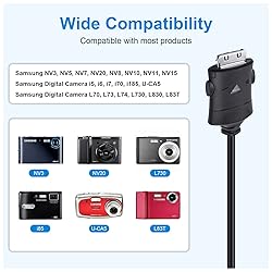 【STRONG COMPATIBILITY】SUC-C2 USB Charging Cable Compatible with Samsung Digital Camera NV3, NV5, NV7, i5, i6, i7, i70, NV20, L70, L73, L74, L730, L830, L83T, U-CA5, NV8, NV10, NV11, NV15, i85, etc. 【Fast Charging and Sync】Plug and play, high-speed data cable enables fast data transfer of up to 480Mbps, precision connector and twisted pair construction ensures high-speed and error-free data transfer. Fast transmission improves our work efficiency and facilitates our life. 【HIGH QUALITY MATERIALS】Ideal for replacing damaged data cables, its sturdy plastic material ensures maximum strength and durability for long lasting use. It does not break easily. 【PERFECT ACCESSORY】It supports digital camera charging and data transfer, saving you valuable time. Helps you download images from your digital camera to your computer at extremely fast speeds. It's the perfect choice for our camera data cable. 【Excellent Customer Service】What You Get:1* Replacement SUC-C2 USB Cable,4.9ft/1.5M,We offer 24 months of customer service. Please feel free to contact us if you have any concerns. We are committed to providing the best service.