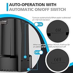 Copper, Thermoplastic Automatic On/Off Switch: BOMGIE Automatic water pump has a automatic switch. It will automatically turn on when water has been detected at 1-1/ 2". When the pump remove water to approximately 1/4 ", the pump will run for additional 60 seconds and then turn off High Efficiency: High-efficiency submersible water pump with 1/3 HP power motor. Draning water up to 2250 Gallons Per Hour( 37.5 gallons per minute) at zero feet. Max. 33.5 feet of vertical height. Drain Pump with 10ft power cord and pure copper wire motor, energy efficient and high productive, perform well in drainage Advanced Technology: Submersible sump pump is made of thermoplastic material, which reinforced its durability and corrosion resistance. Removable suction screen and handles up to 1/8 inch solids, protect water pump from damage. Small electric water pump runs quiet and stable, fits for home requirement Wide Applicability: Automatic utility pump can be operated easily by plugging into the power supply. Suitable for draining water from swimming pool covers, basements, pits, ponds, window wells, rain barrels, hot tub spas, and flooding in low lying areas. Sump pump is also perfect for irragating, garden watering, car washing and other home requirement Safety Guarantee: Automatic sump pump is UL certified and 100% manufacturer tested. Engineered with quality components and built-in automatic thermal overload protection make sure water pumps are built to Last.Please do not hesitate to contact our Service Team, we are here to help for any concerns within 24 hours