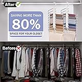 • Upgrade 9 Layers Pants Hangers Space Saving, 2 Pack MultiFunctional Pants Rack Clothes Hangers S-type Non Slip Pant Hangers Closet Organizer for Pants Jeans Trousers Skirts, College Dorm Room Essentials Free Up Closet Space! Keep your hangers neat and organized! About Product Specification Color: White Material: Stainless steel + Plastic Include: 2 pack space saving hangers for clothes 9 Layered Upgraded Hangers for Clothes Pants hanger has an S-shaped 9-tier design, allowing up to 9 pairs of pants to be hung on 1 clothes hanger at the same time. Also great for storing pants, scarves, ties, towels and other accessories. Helps keep your closet organized. Jeans Organizer for Closet Two Usage Modes Hangers for pants supports two types of hanging. Vertical mode: Saving more than 80% space for your closet. Horizontal mode: Convenient to pick up and place/dry clothes. You can choose the right hanging method for the trouser hanger according to your closet to help you make the most of your closet space. Non Slip Clothes Hangers Space Saving Keep the jeans hangers space saving balance & Detachable. Each shirt hangers space saving have non-slip black plastic tube and anti slip caps on the ends to protect your clothes fall off. Sturdy Collapsible Hanger Organizer The pants hangers organizer made of stainless steel which is sturdy and anti rust. Each shirt hanger can hold up to 20kg Assemble in Seconds Just put the rods through the holes and put the end pieces over the end of the rods.