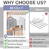 Upgrade 9 Layers Pants Hangers Space Saving, 2 Pack Pant Hangers Organizer Multifunctional Pants Rack Space Saver Closet Organizers and Storage Hangers for Pants Jeans Leggings Trousers Skirts, White