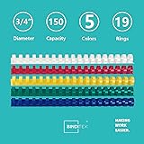 Binditek 30 Pack Plastic Binding Comb Spines, 3/4 Inch Diameter, 150 Sheet Capacity, 19 Ring, for Letter Size, Multi Color (White, Yellow, Red, Green, Blue)