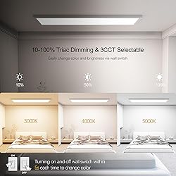 50W 5500lm Hight Brightness - 1x4 LED Flat Panel Light Surface Mount: AIKVSXER Super Bright 1x4 Surface Mount LED Ceiling Light is designed with high-efficiency LED chips to replace traditional fluorescent light, high-efficiency (efficacy over 110LM/W) light source, reducing carbon emissions and your electric bill by 85%. 3000/4000/5000k Selectable - 4FT LED Light Fixtures For Kitchen: AIKVSXER 3 in 1 color 4 Foot LED Light Fixture supports 3 color temperatures(3000k/4000k/5000k): Warm Light/Neutral Light/Cold White Light. Whenever you want to change your mood, you can change color temperature easily by continuously turning on and off the wall switch, without removing the light fixture! This LED 4FT Light Fixture also supports 10-100% Triac Dimming. You can arrange brightness smoothly with Triac dimmer.(Wall switch not included, incompatible with motion sensing switch) 0.98 Inch Ultra Thin Design - 48 Inch LED Fixture: The slim design (just 0.98 inches) easily blends with white ceilings and allows for horizontal mounting. It offers glare-free, flicker-free, spot-free, and uniform illumination, providing better eye protection. Wide Application - 1x4 Kitchen Lights Ceiling Flush Mount: AIKVSXER LED kitchen ceiling lights are widely used in workshops, basements, garages, closets, laundry rooms, kitchens, and other indoor spaces. They provide super bright illumination for each area and are the perfect replacement for 4-foot fluorescent fixtures. Easy Installation on Cement/Wood/Drywall & ETL Certification - 4 Foot LED Fixture: AIKVSXER flat LED lights come with screws suitable for various wall installations, including cement walls, wooden walls, and drywalls. They boast a long lifespan of 50,000 hours and are ETL certified.