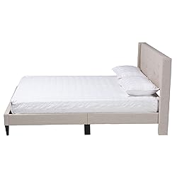 Baxton Studio Casol Mid-Century Modern Transitional Beige Fabric Upholstered Queen Size Platform Bed Button-tufted headboard Padded with foam and upholstered with fabric Tapered legs Wood slats eliminate the need for a box spring