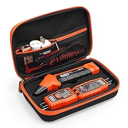APPLICABLE MODELS: The hard case kit is suitable for Klein tools ET310 ac circuit breaker finder with integrated GFCI outlet tester, 80041 80016 Outlet Repair Tool Kit, RT250 receptacle tester.(For sale is case only, not include the device and other accessories) PREFERRED MATERIALS: electrical tester kit is made of hard EVA material, which has the functions of environmental protection, waterproof, shockproof, etc., to protect your instrument from scratches and damage, the double zipper design is widened and thickened, and the 360-degree sliding is smooth, and there will be no jamming. CUSTOMIZED LINING: The circuit breaker detector housing is made of real machine 1:1 mold, which can fix the meter inside to avoid shaking, the Klein multimeter kit will not fall when the power tool box is opened, and the inner auxiliary compartment is used to store the clip adapter , Grounding adapters, lamp socket adapters, electrical test leads, etc. The compartment has a zipper closure so it won't fall out. EASY TO CARRY: Sturdy and classic klein breaker finder storage bag zipper is easy to take on the go, we have specially designed a widened handle strap, which is easy to carry and extract when you are out or traveling. case is light and compact and can be placed in your backpack, hand luggage or luggage to provide better protection for the klein tools. PRODUCT SIZE:External dimension:9.5*5.5*2.5 inches(LWH),About 295g weight, besides the case we also provide L 7*W 6 inches cleaning cloth, which can be used to clean your electrical tester kit.