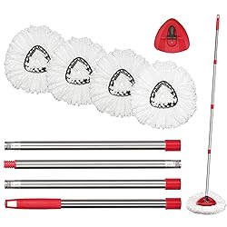 【Applicable Model】- Note:The mop replace head, mop base and mop handle set is ONLY compatible with O-Cedar EasyWring Microfiber Spin Mop. It doesn't fit on Rinseclean mop basket, which is dual system with the clean water addition. 【Value Pack】- Includes 4 Pack spin mop refills and 1 base&Handle. Easily detach and snap on perfectly. Compatible with the EasyWring Spin Mop, thick fibers, work well as original. 【High Quality With Deep-Cleaning】- Made of anti-abrasive microfibers, durable and machine washable.the microfiber mop head removes and absorbs tough dirt and grime easily. 【Making Mop Easier】- These mop head has superior decontamination ability, both dry & wet use. The mop handle is extended design, so no need to bend over. Short, tall and super tall people all of them can use it by adjust the height. 【Multipurpose】- These mop heads can make cleaning floors a breeze. It suits for wooden floors, ceramic tile, laminate floors, marble floors and other sealed hard floors. Also, you can use it for car or window cleaning.
