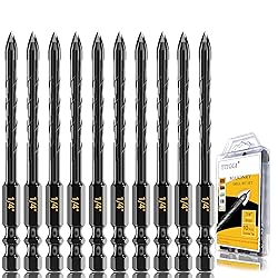 HIGH QUALITY DRILL BIT SET; TITGGI masonry drill bit set, drill bit tip made of high-quality YG6X hard alloy, fully polished and rustproof, clean and sharp without burrs. This cement drill bits can easily penetrate various material (glass, ceramic, cement, wood, brick, hard plastic, etc.) WONDERFUL DESIGN; Cross shaped tip design reduces resistance and makes faster speed; Hexagonal handle makes the drill tighter and safer to use. When you pick up our concrete drill bit and pass through the tiles, it seems to feel unimpeded. You will be amazed at the wonderful design! FAST PENETRATION; The tile drill bits are suitable for most general drill, electric drill, hand drill and bench drill. The double U-type groove design and spiral handle design bring fast drilling dust remove.Save you time and effort! SATISFY ALL YOUR DEMAND; Package includes 10 PCS 1/4" (6mm), there are 10 same concrete drill bit sizes to meet needs for multi holes in variety projects. WORRY FREE! For genuine masonry drill bit, please identify TITGGI brand concrete drill bit set, international tool brands with guaranteed quality. If you're not satisfied with our Drill Bit Set, we will offer you premium customer service! Feel free to ORDER NOW!