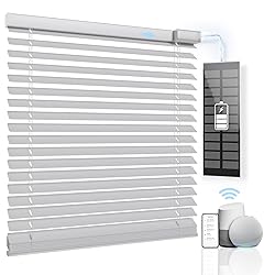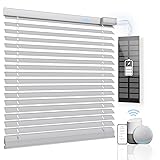 Motorized Blinds with Remote, Control Solar Powered Blind Window Blind Cordless Automatic Electric Blinds Windows Light Filtering Compatible with Google Alexa,White 39" Wx64 H