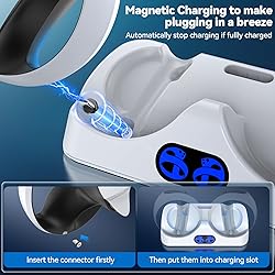 - Controller Charging Dock for PS5 VR2, PSVR 2 Charging Station with VR Headset Holder Display Stand, PS VR2 Controller Charger for PSVR2 Accessories with Led Indicator, 2 Magnetic Clasp & Type-C Cable