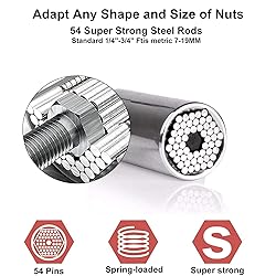 Premium Quality - ZHENROAD universal socket is made of chrome vanadium steel, Each socket contains 54 super strong steel rods that are individually spring actuated allowing the socket to automatically conform to any shape instantly, move to different types of fasteners without every changing sockets. Specifically machined to fit securely into a hand held driver, drill driver or impact wrench. Multi-Function Universal Socket - Special self-adjustment of this universal sockets can fit any size or shapes, suitable for standard 1/4” to 3/4” and metric 7mm to 19mm nuts and other various shape and size objects. You won't need to purchase a bunch of separate tools when working with different types of fasteners, it meets all your needs and can improve work efficiency. Wide Range of Applications - Perfect for automobile industry, home maintenance, manufacturing, construction and other industries, also favored by home decoration DIY design enthusiasts. Suitable for all types of nut bolts (rings bolts, square nuts, rotating hooks, hexagons, wing nuts, broken nuts). Ideal Present - Cool gift for different occasions like Birthday, Valentine's Day, Father's Day, Thanksgiving, Christmas, and any holiday that needs gifts.It can be used in the automobile industry, home maintenance, manufacturing, construction, So buy this for your Men, Dad, Husband, Boyfriend, Him. After-Sale Service - We provide you with high-quality products so that you can buy the good things you like. Also your satisfaction is very important to us. If you have any questions, you can contact us at any time, we are pleased to help you and will do everything we can to make you satisfy.