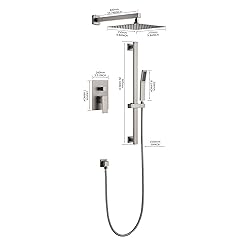 【PREVENT SCALD】The shower system has CUPC certified valve, which monitors water pressure balance to protect you from scald due to sudden changes of pressure of hot or cold water. Balance the supply of hot and cold water, so you can hardly feel temperature change when taking a shower even if other people using cold water in the kitchen. 【HEIGHT ADJUSTABLE SLIDING ROD】Equipped with a height-adjustable slide bar, the height of the hand-held shower can be adjusted according to needs. This unique and versatile design meets the different heights of the whole family. Every member can freely adjust the height to suit them and enjoy bathing! 【CONVENIENT SHOWER HEAD】10 inch metal stainless steel ultra-thin shower square nozzle, simple and stylish, with aesthetic feeling, and value-for-money experience. The hand shower is connected to a 59-inch stainless steel hose, which can easily clean all parts of the body, or bathe children and pets. 【EASY TO MAINTAIN】Stainless steel hand shower and top shower are equipped with easy-to-clean rubber nozzles, easy to clean and maintain. Using advanced, electroplating coating technology, it is durable, not easy to fade, spot-resistant. 【BUY WITH CONFIDENCE】 Our shower set adopts American standard 1/2 inch NPT thread, compatible with most standard U.S. plumbing connections, suitable for most American bathroom. CUPC certified ceramic cartridge makes the shower kit long lasting.