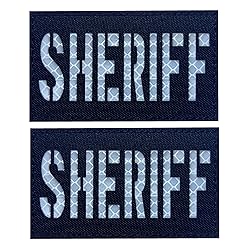 2 Pack Reflective Sheriff Patch US Flag with Hook Back for Service Harness Tactical Vest Collar Hook-Fastener Backing (B-Sheriff)