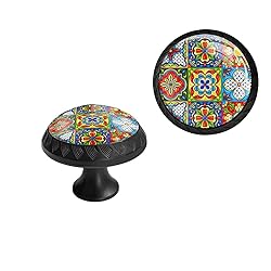 Elohiym 6 Pack Black Drawer Knobs and Pulls, Mexican Talavera Tiles Cabinet Hardware with Crystal Glass Dresser Knobs for Kitchen Cabinets