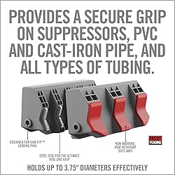 【 Dual-Sided 】Design offers two distinct gripping surfaces tailored for different applications. Tube-Fit jaws can also effectively hold up-to 3.75" diameters, making it adaptable for various sizes of cylindrical objects 【Rubberized v-shaped surface】Provides non-marring and heat-resistant support, ideal for delicate items like suppressors 【Metal v-shaped surface】Delivers an ultimate vice like grip on robust materials such as cast-iron pipe or steel tubing where marring is not a concern 【Easy reversal feature】Allows quick switching between both sides according to your project's demands without needing additional tools or complicated procedures 【High-quality material construction】Made from durable materials that can withstand high levels of pressure exerted by hardy round objects like pipes and tubes