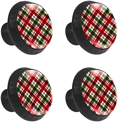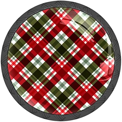 4 Pcs Cabinet Drawer Knobs Christmas Themed Plaid Red Green Decorative Round Crystal Glass Furniture Drawer Handles Dresser Cupboard Pulls with Screws for Home Kitchen Office Bathroom Wardrobe