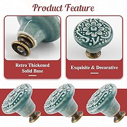 - Ceramic knobs for cabinets and drawers are practical pull handles and vintage decorations for closet, wardrobe, drawer, dresser, shelf and furniture door knobs. Specifications: Cabinet Knobs Top Diameter: 1.3"/34mm Decorative Door Knobs Height: 1.18"/30mm Bottom Diameter: 0.55"/14mm Screws for Each Pull Handles: M4 x 46mm, M4 x 25mm Material: Ceramic Color: Green Quantity: 8 Pieces Note: Due to manual measurement, please allow a deviation of 1 - 2mm. Please check our product size carefully and read the product size descriptions before purchasing to avoid possible unpleasant shopping experience.