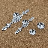 ESreake 5 Pack Silver Diamond Clear Crystal Glass Decorative Knobs with Plate,Drawer Dresser Pulls Handles with 3 Kinds of Screws for Kitchen Bathroom Office Decoration (5 Pack, Small, Silver)