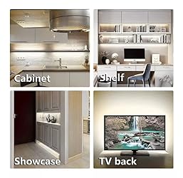 【Motion Sensor Strip Light】 : Motion Sensor switch turn light on or off by human induction. You can open the back cover of the sensor to adjust time delay(2-280s), LUX value(10-300lux), Sensor distance (10cm-7M) 【Power Adapter】: FCC listed power adapter run on DC 12V, safe to children, Efficiency Level V. 【Cuttable and Connectable】: The LED strip lights could be cut every 3 LEDs increments, also with extension cables and connectors, you can easily DIY the length you want. 【High Brightness and Long Life LED】: While normal LED brightness is 5-6 lm/LED, We use high brightness LED: 6-7lm/LED to ensure better lighting. 50000+ hours of long life. 【Strong Tape and Easy Installation】: Backed with strong double side 3M tape, stick firmly to walls. You can easily cut the desired length, and this motion sensor strip light is ultra thin fits perfectly in the narrow corners of the cabinets and around the wall. 【Customer Service】: You can enjoy worry-free shopping by our 12 month. Plus, we've a picture on how avoid the most common problem on using motion sensor switch and led strip light, please read it carefully before using.