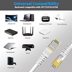 - Are you still crazy about the slow network?KASIMO CAT 8 Ethernet Cables Solve All Your Troubles for Faster Speed and More Stability Internet SurfingWhy choose Category 8 Cable not CAT 7/ CAT 6......Ethernet Patch Lan Network Cable?- KASIMO Cat 8 cables achieve higher performance than cat7, cat6e, cat6 or traditional cat5e, cat5,boost your online gaming experience.- CAT 8 faster than CAT 7. CAT 8 cable transmitting can be up to 40Gbps, also the bandwidth can be up to 2000MHz.- CAT 8 stability than CAT 7. It use the latest technology, stronger anti-interference, low resistance.- CAT 8 more durable. Uses the new environmental protection PVC material, better corrosion resistance, not easy to age.- CAT 8 added tearing line inside, protect cable, prevent break, and easy to open the cover.- Interference Elimination. Each of the four twisted pair sets are shielded by foil, and the patch cable is terminated with two 24K Gold RJ45 connectors. Multi-protection mechanism significantly improves noise resistance and interference elimination.- Fast & Furious, Performance Maximization.Every second, even millisecond, counts in the gaming world and a quality Ethernet cable help you stay one step ahead of the competition.-100% The Best Quality And Satisfaction Guaranteed.Category 8 Cable Compatibility: Desktop, Laptop, Router, Modem, Hub, DSL, Switches, Xbox360, Network Printers, Network Attached Storage Device, Computer and network components and more.