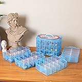 - Color:Blue Material:Plastic Size:10"(L) x 6.7"(W) x 16.3"(H). Large. Lightweight clear plastic storage container allows you to conveniently keep your sewing supplies like thread spools, bobbins, beads, scrapbooking supplies, nail art supplies, fish tackles, small hardware, arts and crafts accessories & more! 70 Adjustable Compartments:7 Stackable tiers, each tier with 10 adjustable segments for a total of 70 small compartments. Each divider wall can be removed to customize the compartment sizes in order to fit larger items. Perfect for every hobbyist; divider sections fit Rainbow Loom Bands, kids’ figurines and Legos, art and craft accessories, jewelry, perler beads, thread and sewing kit storage. Sturdy and Leightweight, built from strong plastic material this container is durable and portable. Lid comes with handle making it easy to carry and use as a tackle box. 100% CUSTOMER SATISFACTION GUARANTEED :If quality and Transport damage problems can choose a replacement or refund,you can enjoy unconditional return and refund serivce.Do not hesitate to contact us if you have any questions. Customer satisfaction is on our top priority.