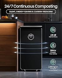 TRUE COMPOST, NOT DEHYDRATION: with advanced Microbial Degradation Technology, GEME Electric Composter truly breaks down food waste, producing authentic, nutrient-dense organic compost—not just a dehydrated imitation PERMANENT BUILT-IN FILTER: The integrated filter of GEME Electric Compost Bin, is built to last the lifetime of the composter, requiring absolutely no changes. Zero-maintenance experience and significant long-term savings WHISPER-QUIET & ODOR-FREE: Electric Compost Machine, with built-in industrial-grade deodorization system, completely neutralizes odors, while the ultra-quiet operation ensures it never disturbs your home. Enjoy clean air and peace of mind, 24/7 19L LARGE CAPACITY: GEME Electric Composter for Kitchen, Process more, less often. With a generous 19L volume and a powerful daily processing capacity of up to 11 lbs. Fortlessly handles the food waste of an active family 95% REDUCTION RATE: Electric Composter Indoor Effortlessly converts kitchen scraps into 5% Nutrient-Rich Organic Compost. Ideal for a family of 3 and engineered for up to 1 year of continuous, cleaning-free operation COMPOST IN 6-8 HOURS: Why wait a full day for a dehydrator or months for a compost pile? GEME Kitchen Composter converts food waste into nutrient-rich compost in just 6-8 Hours through advanced Microbial Degradation Technology EFFORTLESS ADD-AND-GO USE | Simply drop in food scraps anytime. GEME Electric Composter operates continuously and automatically—no buttons to press, no cycles to wait for. Plus, Compost machine requires no cleaning between uses