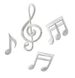 ETDesign #E02404 Dancing Music Notes Iron On Embroidered Applique Patch by ETDesign (Silver Color)