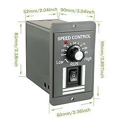 Input voltage: DC 12-60V; Output current: 20A; Continuous current: 12A; PWM pulse width adjustable range: 0% - 100% Size: 60 * 90 * 99mm/2.36 * 3.54 * 3.9in (L * W * H), DC motor speed controller is small, installation size: 52 * 81mm/2.05 * 3.19in, easy to install in a narrow space; Support forward/reverse rotation control and stop Soft start protection: the motor controller has a soft start protection function, which can effectively reduce the inrush current, protect the motor and extend its life Function: DC motor speed controller switch can feed back slip energy generated during speed regulation. Efficient, effectively improve energy utilization and efficiency. Application scope: widely used in industrial DC motor speed regulation, DC fan, packaging, printing, electronics, instrumentation, clothing machinery, medical machinery and other industries