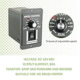 EPLZON DC 12-60V Motor Speed Controller 20A Adjustable PWM Controller Switch Forward/Reverse Electric Motor Speed Regulator Suitable for DC Brush Motor