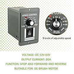 • EPLZON 20A Adjustable PWM Controller Switch Forward/Reverse Electric Motor Speed Regulator Specification: ✔ Main functions: the motor speed controller supports forward/reverse rotation control and stop, which is more flexible and convenient to use. ✔ Circuit board - a well-designed housing can protect the controller board from damage and heat dissipation. ✔ This product is made of high-quality electronic components with stable and reliable performance. ✔ DC motor speed controller has the characteristics of high precision, wide speed range, low power consumption, long service life, etc. ✔ Terminal block design: the terminal block is fence-type design with safety cover. Each terminal block has wiring marks. Please follow the marks when wiring. Packing list: 1 pcs * DC motor speed controller ❗Note: This product is DC brush motor speed controller, can not access AC power and drive brushless motor.