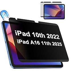 - 【Compatibility】Only compatible with Apple iPad 10.9/11 inch Released in 2022/2025. Fit Models: A3354 A3355 A3356 A2696 A2757 A2777. and compatible with Apple Pen& other Stylus pens. You can check the model number at the bottom back of your iPad 【Privacy Technology Innovation】 Lets you immerse yourself in whatever reading or watching without worrying about peeking. iPad 11 inch privacy screen protector features advanced technologies like micro shutter technology, which reduces the viewing angle to 27°. Compared with other privacy screen film, IPROKKO utilizes technological innovation to improve the privacy protection effect. Using antireflective and anti-scratch coating and enhanced magnet strength to meet customers' more needs. 【Eye Protection】iPad 10th/11th generation screen protector privacy designed with advanced antireflective coating to block 95% blue light and UV light, effectively protect your eyes from visual fatigue. You can see the iPad 10th/11th generation privacy filter clearly even outdoors, in sunlight or under lighting. 【Strong Magnetic Suction】After surveying 100 customers, most of them are dissatisfied with the magnetic force of the iPad magnetic protection film. IPROKKO uses strong NdFeB magnets instead of ordinary magnets, which will not fall off even if the magnetic privacy protection film is covered on another PET film. 5 seconds to install and remove, no residue and air bubbles. Comes with a high-quality plastic folder, which can keep the iPad privacy screen well when you take off it. 【High Definitiona and Sensitivity】Advanced Micro shutter technology make privacy screen iPad A16 generation Higher light transmittance creates a high-definition visual experience, which solves the problems of other protective films such as blurring, dizziness, and graininess. The ultra-thin design is 0.2mm, which keeps the screen highly sensitive, and your Apple pen is accurately and continuously touched without delay. 1:1 precise match with iPad, compatible with all iPad cases.