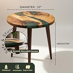 20" Resin Walnut Round Side Table | Epoxy End Table | Coffee Table | Mid Century Modern Resin Walnut | Living Room Furniture | Green Color