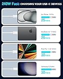 USB C to USB C, 240W USB C Cable, 6.6ft C to C Cable Fast Charging for Macbook Pro/Macbook Air, iPad Pro 12.9-inch, iPhone 15/Pro Max/Pro/Plus, Samsung Galaxy S23,Compatible 140W/100W /65W/45W/35W/20W
