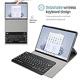 Ultra-slim Wireless Keyboard Case for Microsoft Surface Pro 9 (2022), Microsoft Surface Pro 8 (2021) 13-Inch Tablet All in One Design: Magnetically Detachable Wireless Keyboard + Stand + Carrying Case; Laptop-style keyboard with well-spaced keys and spring mechanism underneath offer better typing experience Adjustable Viewing Angles: Three dents on the case for propping up the tablet into three different viewing angles in landscape mode Full Protection: Premium composition leather exterior and soft interior protect your tablet from accidental dropping, scratching and bumps Precise cutouts allow full access to all features